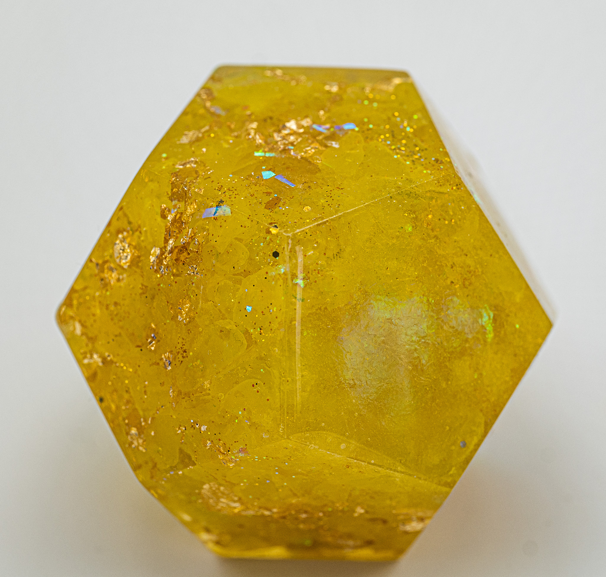 Das organische Harz zieht Energie aus der Umgebung an. Beim Aushärten schrumpft es und erzeugt konstanten Druck auf die eingebetteten Metalle und Kristalle – ein piezoelektrischer Effekt, der das Energiefeld aktiviert.