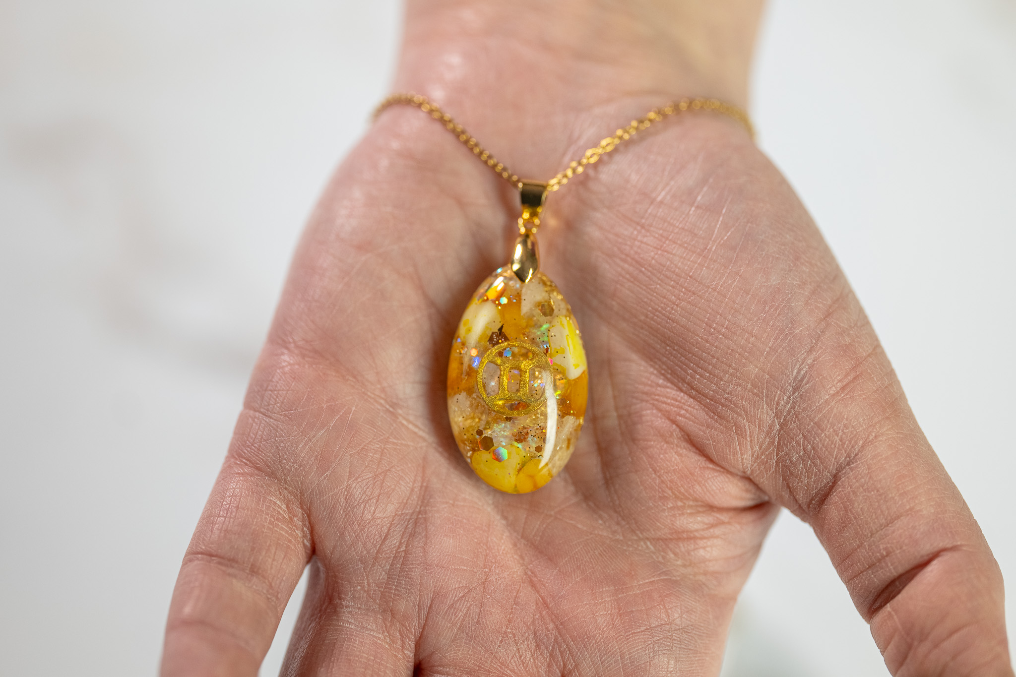 - Harmonisches Gleichgewicht: Neben dem Orgonit-Kern trägt der Zwillinge-Pranatropfen einen Amethyst, um innere Ruhe und emotionale Balance zu fördern.
