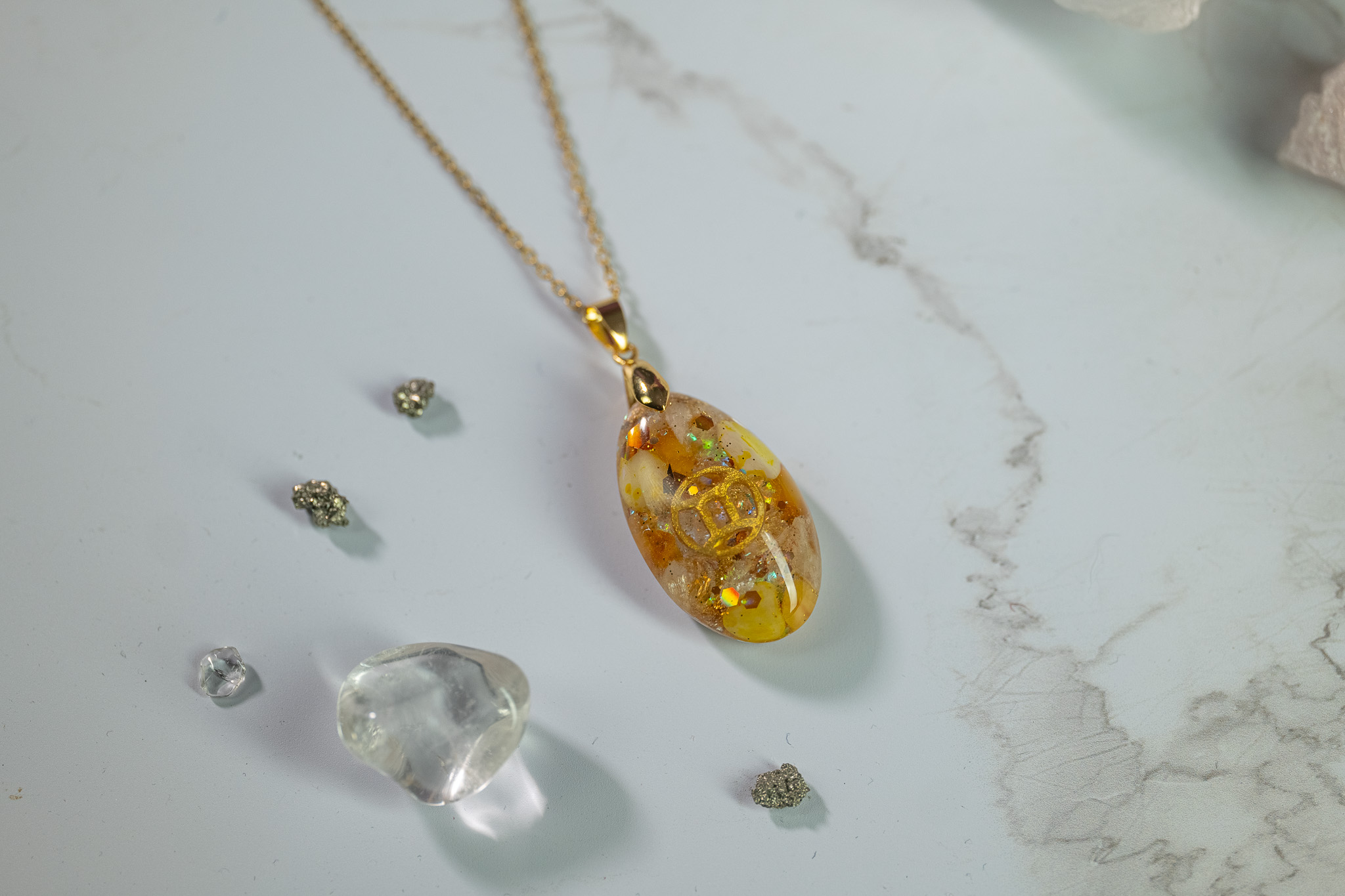 Wir verwenden echte Edelsteine, Kupfer, Silber und Gold – keine Eisenspäne. Jeder Orgonit wird von Hand gefertigt und energetisch vorbereitet.