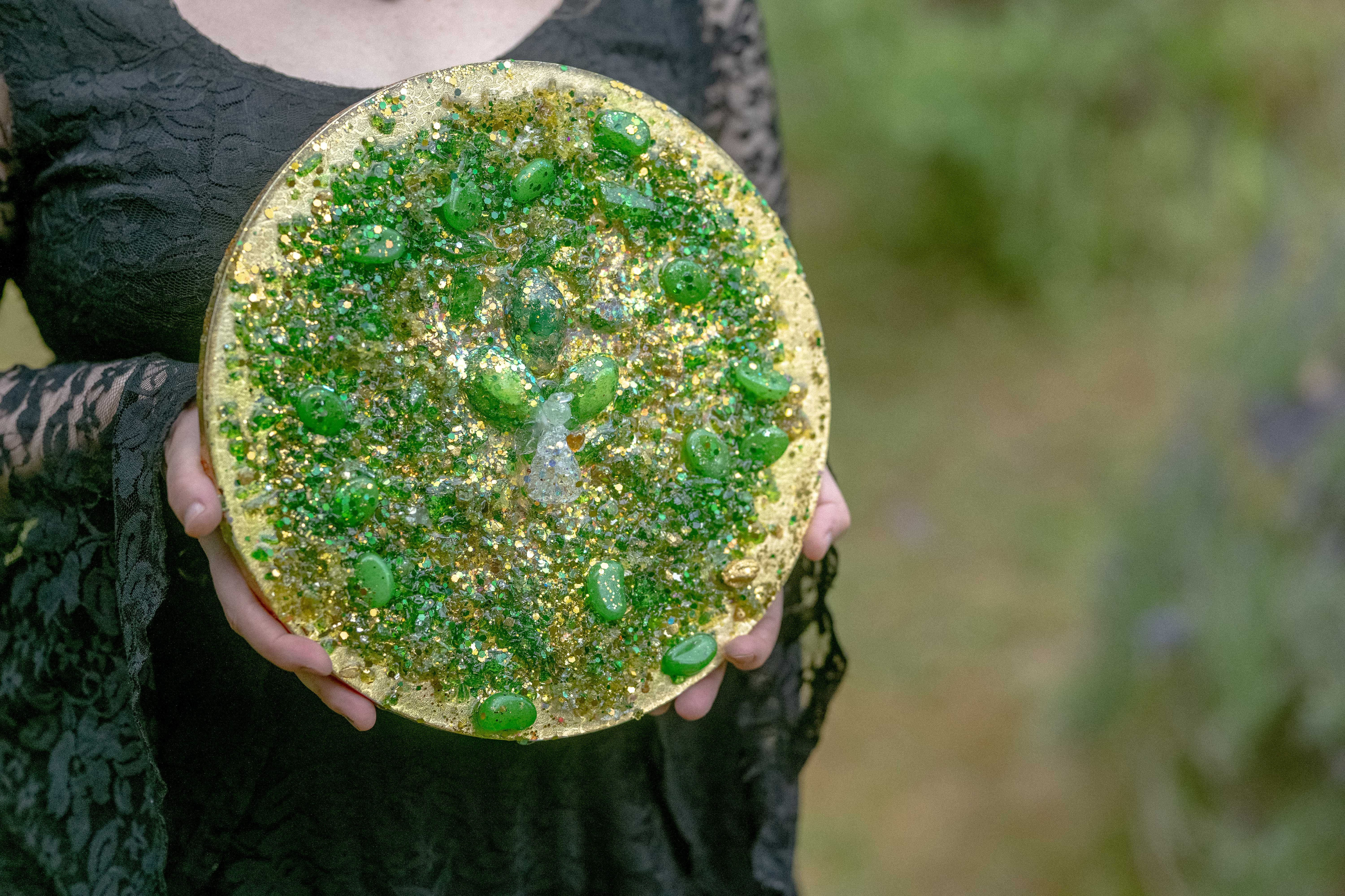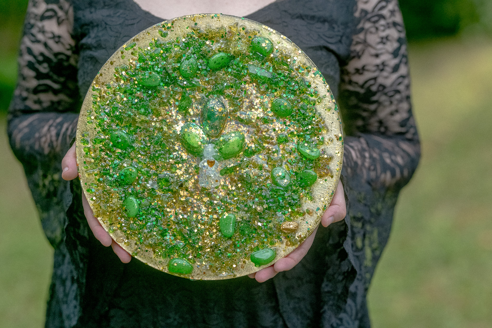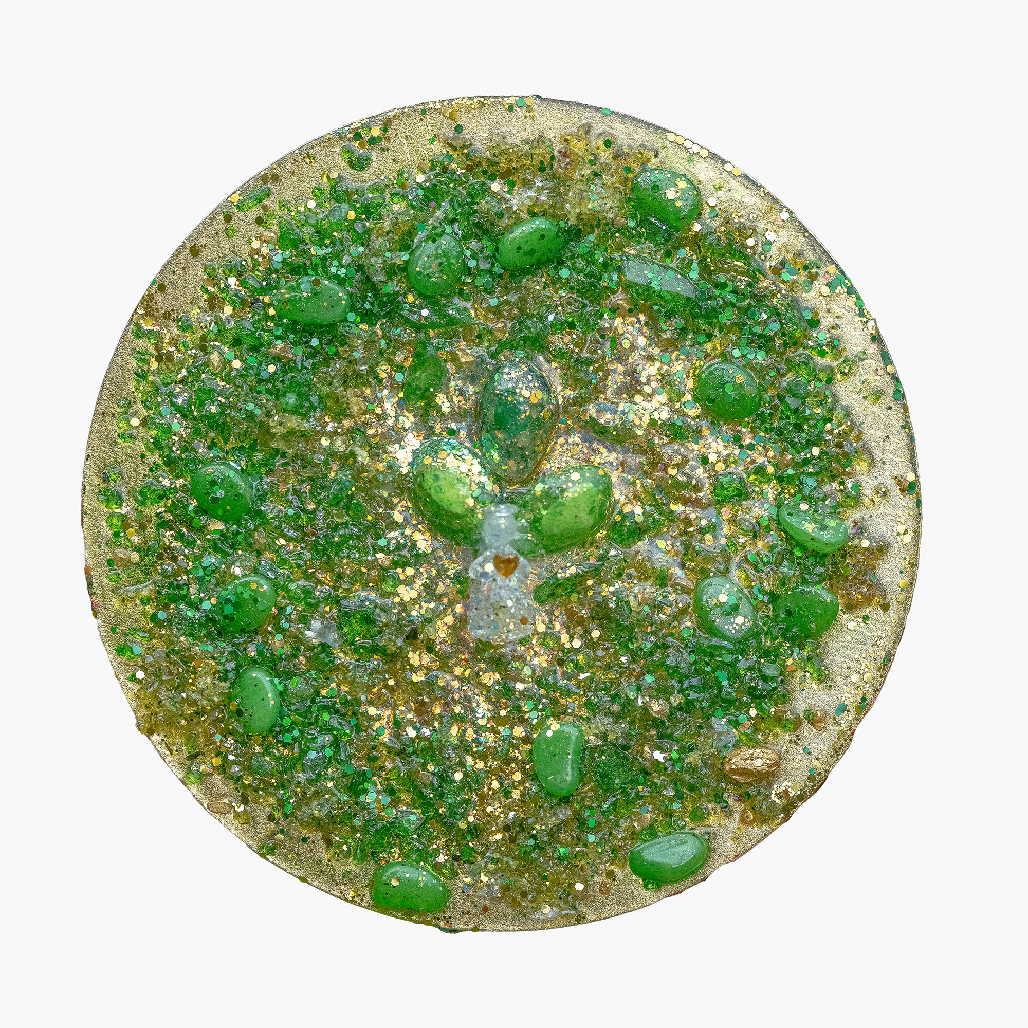 Material: Harz, Pranatropfen, Edelsteinmischung, Goldpigmente