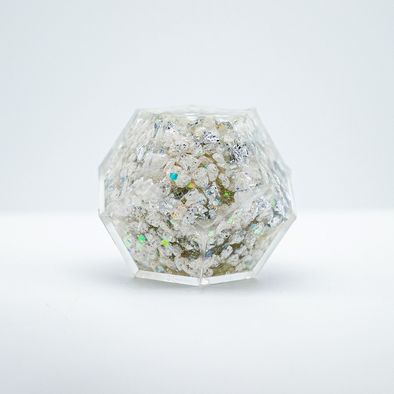 Der Schlüssel zur Matrix. Der Dodekaeder gilt als heiliger Schlüssel zur Ordnung des Universums. Mit seinen zwölf Fünfecken symbolisiert er das göttliche Prinzip und verbindet uns mit höheren Dimensionen. In der „Mini“-Version ist er der perfekte Begleiter für den Schreibtisch oder den Nachttisch. Er kanalisiert harmonische Schwingungen, schafft ein Feld von Klarheit und wirkt wie ein kosmisches Netzwerk, das Körper, Geist und Seele neu ausrichtet. Er schimmert im weiß-silbernen Licht Gabriels und wird speziell für Sie auf Bestellung gefertigt (bitte ca. 1 Woche Anfertigungszeit einplanen).