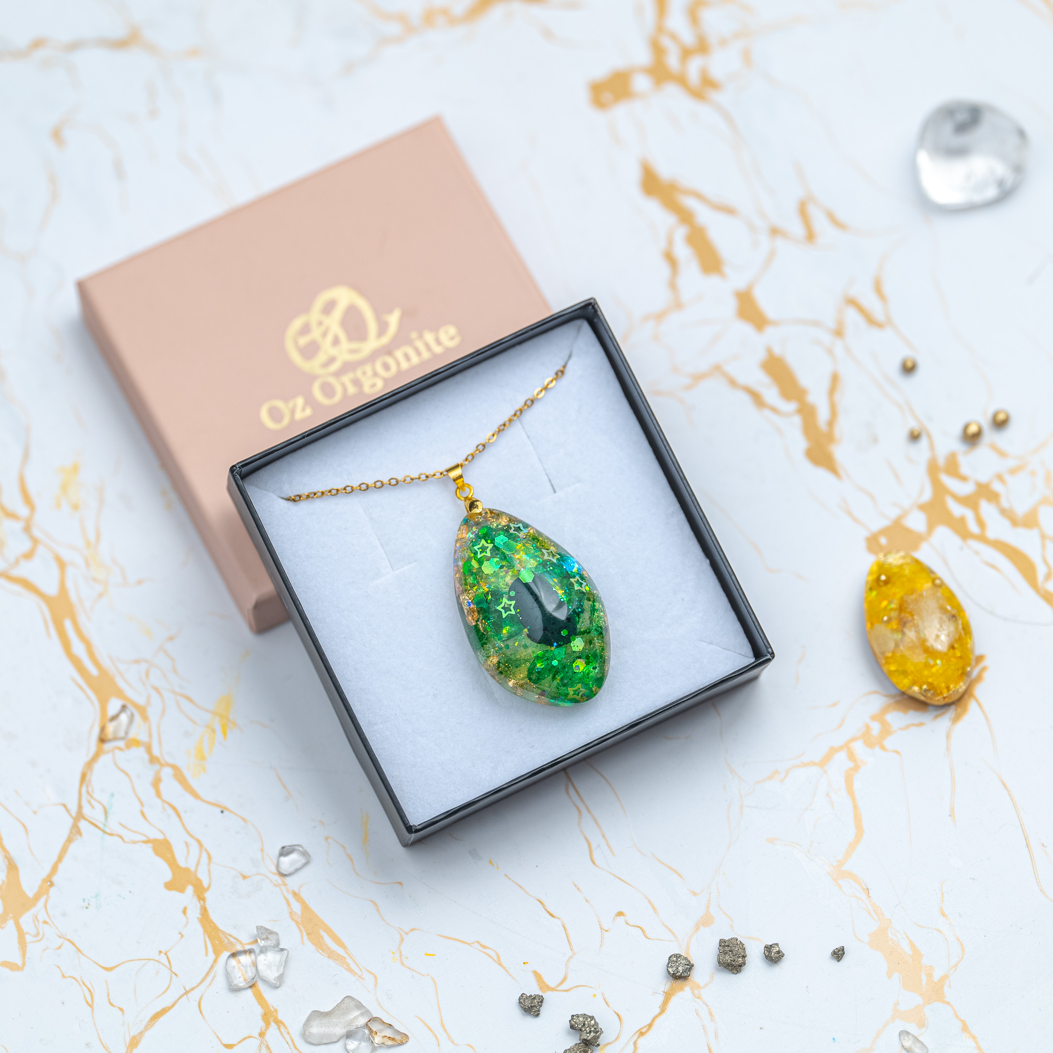 On your nightstand, at your desk, or worn as a pendant – your orgonite will unfold its energy wherever you need it most.