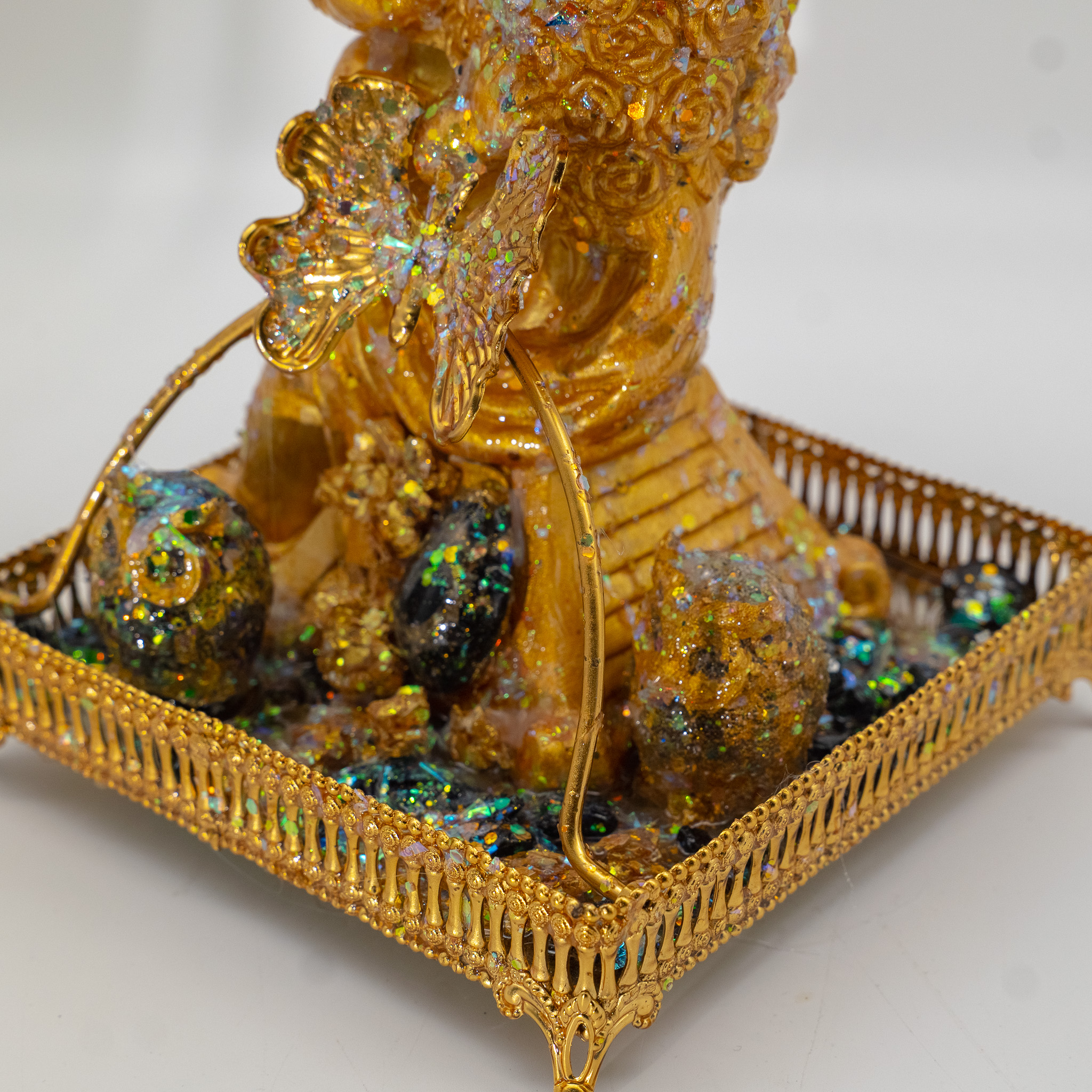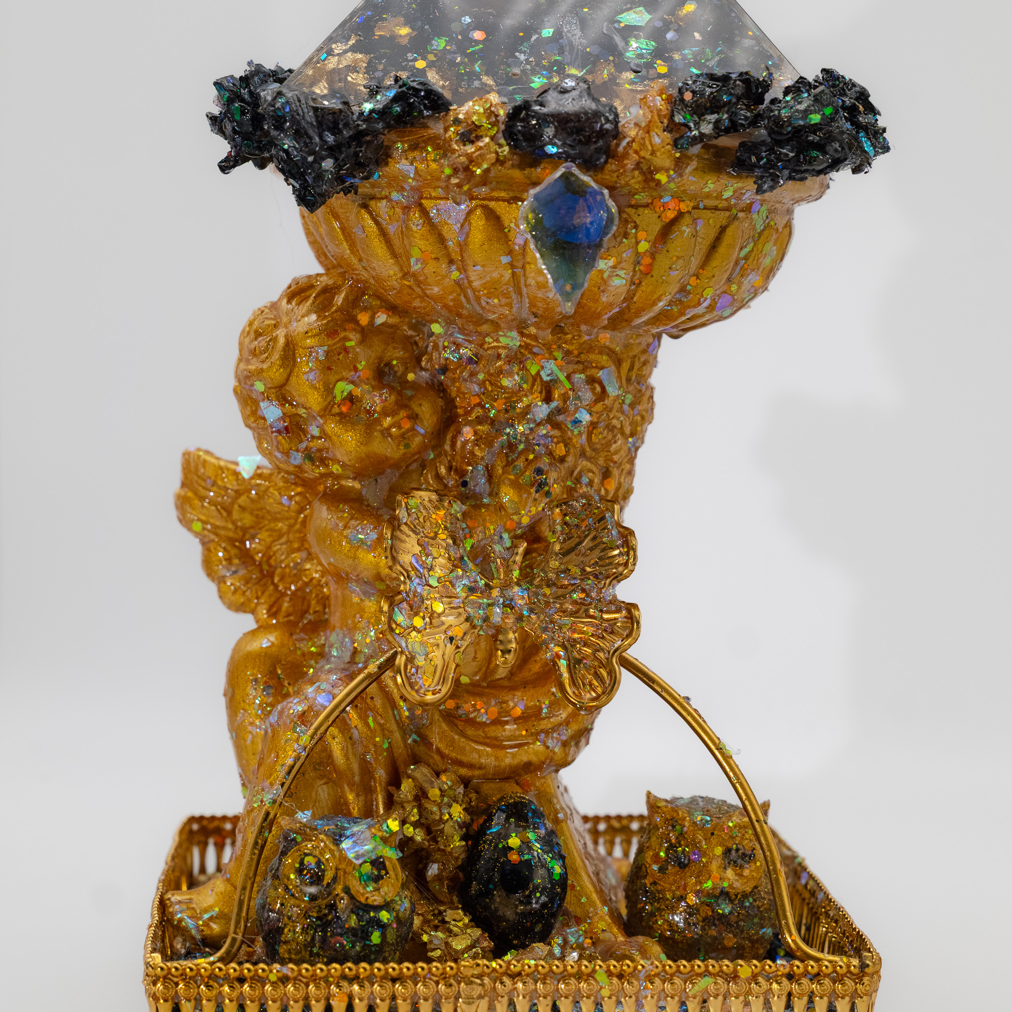 Materials: Gemstones, orgonites, clear quartz, gold leaf
