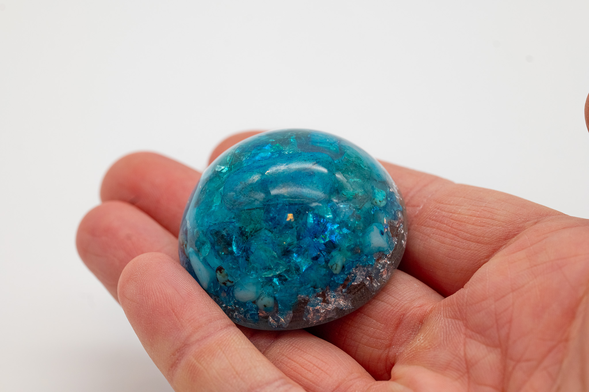 Die Herstellung unserer Orgonite ist ein alchemistischer Prozess. Jedes Stück wird mit höchster Achtsamkeit von Hand gegossen – Schicht für Schicht, Stein für Stein. Doch was Oz Orgonite besonders macht, ist die bewusste Energiearbeit während der gesamten Herstellung.
