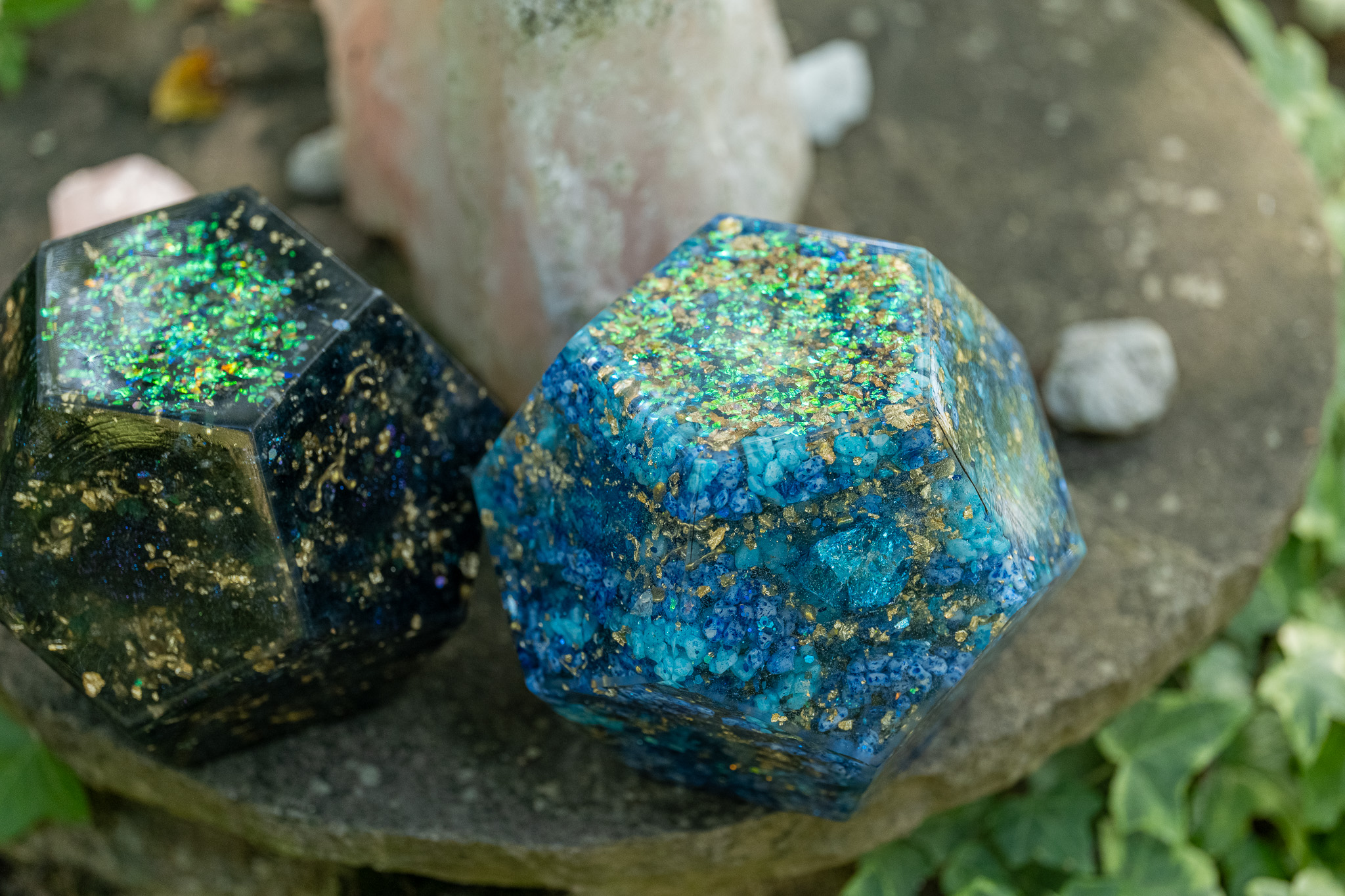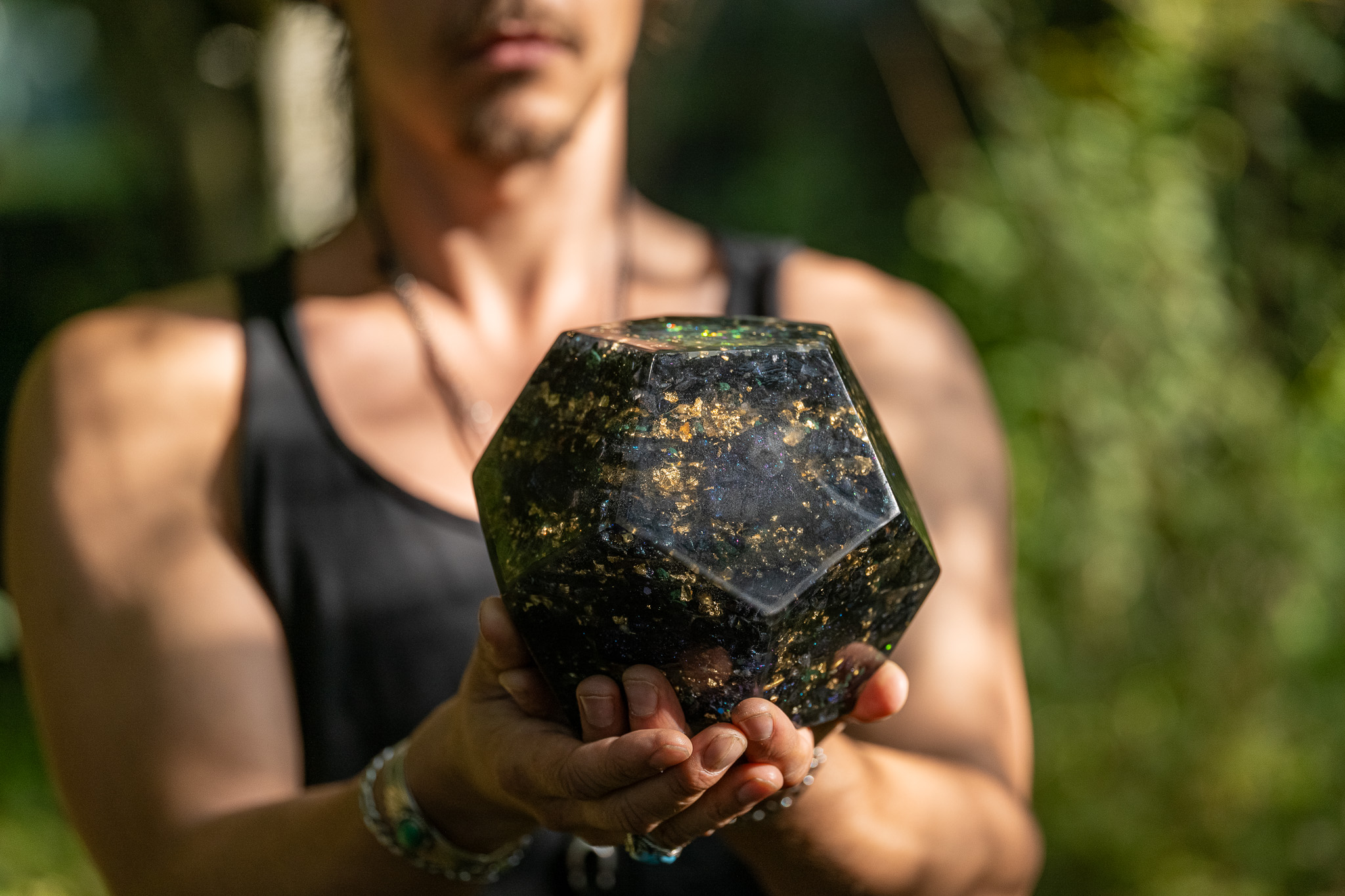 Die Herstellung unserer Orgonite ist ein alchemistischer Prozess. Jedes Stück wird mit höchster Achtsamkeit von Hand gegossen – Schicht für Schicht, Stein für Stein. Doch was Oz Orgonite besonders macht, ist die bewusste Energiearbeit während der gesamten Herstellung.