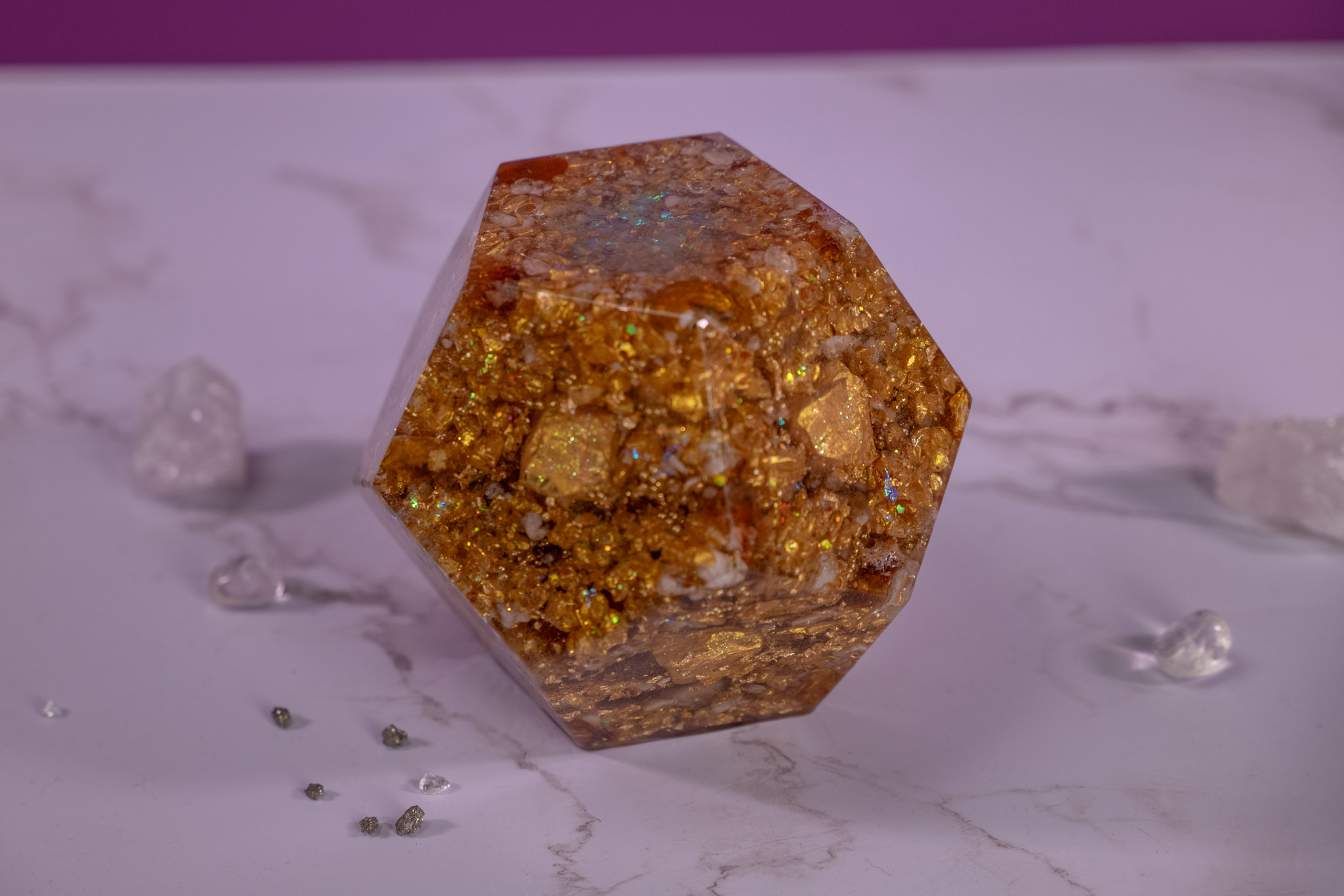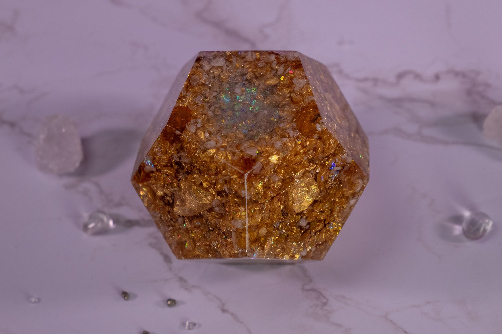 Die Herstellung unserer Orgonite ist ein alchemistischer Prozess. Jedes Stück wird mit höchster Achtsamkeit von Hand gegossen – Schicht für Schicht, Stein für Stein. Doch was Oz Orgonite besonders macht, ist die bewusste Energiearbeit während der gesamten Herstellung.