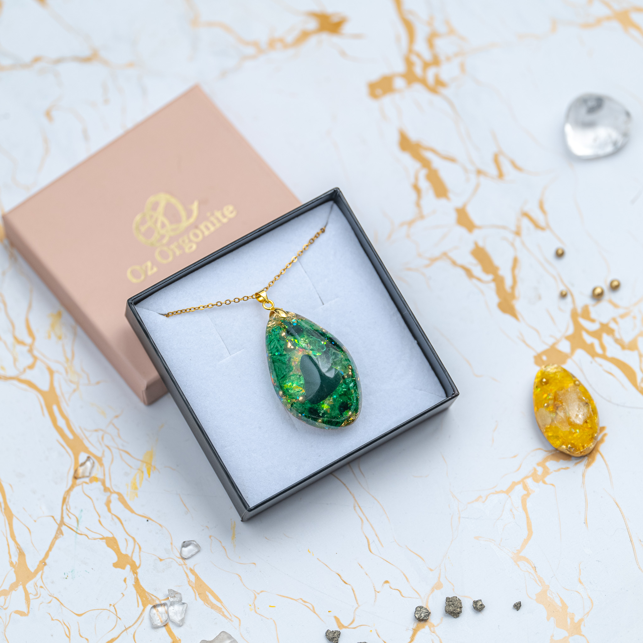 Ein Verbund aus Kunstharz, Edelsteinen und Metallen. Orgonit zieht verbrauchte Lebensenergie (Orgon) an, reinigt sie und gibt diese anschließend wieder ab. Pranatropfen® sind der ideale Begleiter für Unterwegs, bei der Arbeit und natürlich für Daheim.
